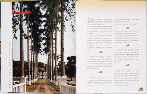 リオデジャネイロ州ヴァソウラス市郊外に位置する、修繕された19世紀のコーヒー農園の写真集。テキストでは、農園の歴史や修繕の経緯に加えて、ブラジルやリオデジャネイロ州におけるコーヒー生産の歴史について解説している。コーヒーの谷の豊富な歴史遺産の保護を促し、地域の観光振興を願って制作された。帝政時代にブラジル経済を支えたコーヒー農園主たちの暮らしぶりが想像できる一冊。