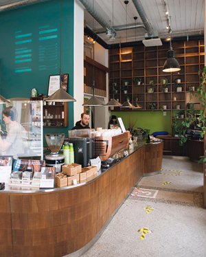 パンデミックの影響でレストランやカフェへの卸販売は半減したが、店舗での売り上げは、席数を半分に減らしたにもかかわらずテイクアウトや豆の販売に支えられ、20パーセントしか落ちなかったという。パンデミック下でも常連客はきちんとお洒落をして店を訪れ、バリスタと新しい情報を交換し客同士でコーヒー談義を交わす。店が育ててきたそんな熱いコーヒーファンに、この店は支えられている。
