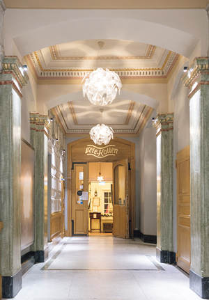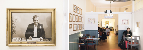 左から:壁にかかる創業者エステル・ノードハンマーの写真。階級関係なく「万人に楽しんでもらう」ことを理念にしていた。/様々な年代や様式の家具が使われている。昔から通う人々からは少しリノベーションするだけでクレームが来るそうだ。