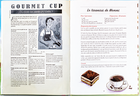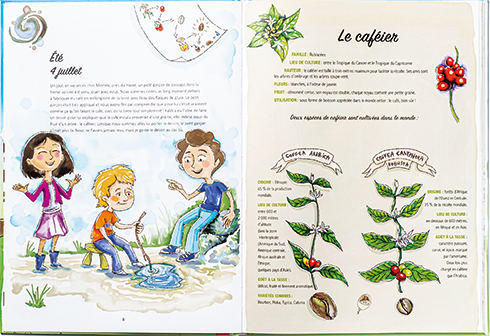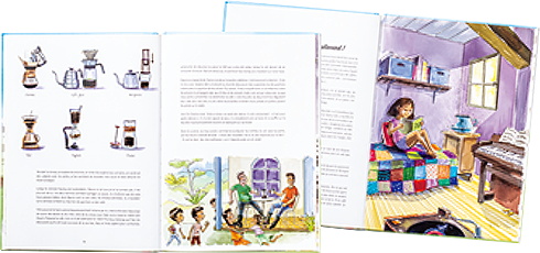 ベルコ社はコーヒー生産の持続性に配慮する買い付けを重視し、フランスの消費者にもそれを啓発したいと願っていた。大学で民族学を修め、正確な知識を物語に編み込むペレさんの本作りは、まさに彼らの求めるものだったのだ。出版費用の一部をベルコ社が負担し、完成本は書店以外に、社と取引のある焙煎所やカフェでも頒布。顧客への案内に使われている。
