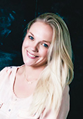 左から:スウェーデンカラーを配した店内。/次に紹介のロースターで自らバリスタ講座を受けたマネージャーのパウラ・モラレスさん。
