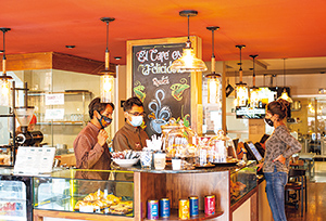 パンデミック中でも来客が多く、バリスタの多忙な働きぶりが印象的だった。