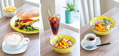 カフェのメニューも国際色豊かだ。国や地域の名前を冠したサンドイッチやパスタなどの軽食が並ぶ。アンデス原産のキヌアを多用するなど地域色を健康志向の客にアピールすることも忘れていない。コーヒーはエスプレッソをベースとした各種ラテが豊富だ。