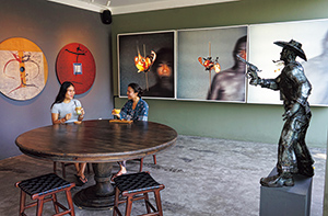 入り口の右手にある空間はテーブル1つだけのゆったりとしたレイアウト。アートを独占できる贅沢!