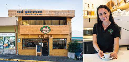 飲食店やツアー会社が多いサンタエレナ地区の中心街で営業するカフェ・モンテベルデ2号店。1日2回、午前9時と午後2時開始の農園ツアーはカフェや周辺のホテルから出発。参加費はヴァンによる送迎付きで35ドル(学生28ドル)。