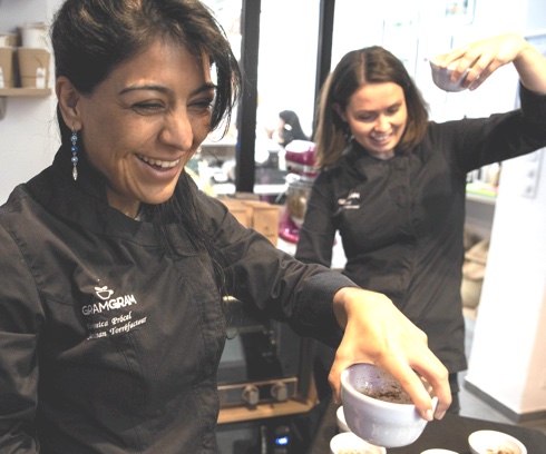 ヴェロニカさん(左)とレスリーさん(右)。パリの有名焙煎所カフェ「カフェオテック」で修業中に出会った。