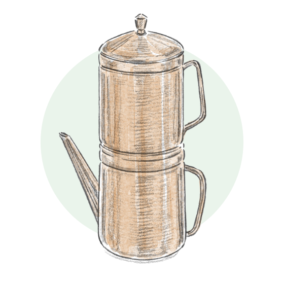 ベトナム式コーヒーを淹れる専用ドリッパー。フィルターにコーヒー粉を入れ、お湯を注いで抽出します。コンデンスミルクを入れたグラスの上で抽出するのがベトナム式。