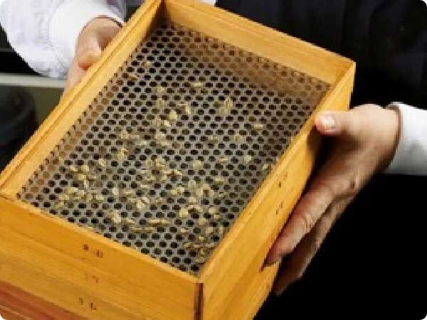 生豆の大きさは穴のあいたふるい(スクリーン)を通して、大粒から小粒まで仕分けられ、選別されます。