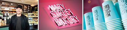 左から:オーナーのポール・アーロンさん。故郷メルボルンで培った感性でパースのコーヒーシーンに革新をもたらし、リードしている。/ピンクのネオンがレトロでどこか温かい印象を与える。/もう一つのキーカラーはパステルトーンのライトブルー。