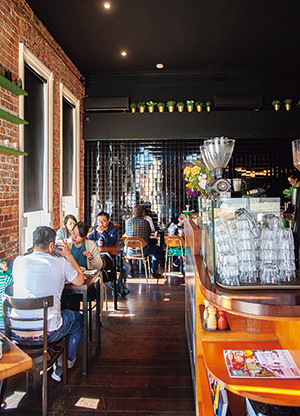 市の重要歴史的建築物にもリストされている煉瓦造りの建物は1906年に建てられたもの。当時は馬を売る会社が入っていたという。今、大きな窓から光がふんだんに差し込む空間に集うのは馬ではなく、コーヒーとリラックスできる時間を愛する人々。鉱業関係の会社に勤めるゴードン・ハンターさんは毎日、朝一番と午前10時に店を訪れ、ダブル・エスプレッソを飲んでいくという。「ここはコーヒーの温度がいつもちゃんとしているんだ。器も良いしね」とハンターさん。