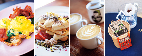 左から:グラブ・アンド・ゴー(テイクアウト)が中心だが、つい店内で話し込む人も。/多く飲まれるのはラテやフラット・ホワイトなどのエスプレッソ・ドリンク。