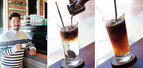 左から:オーナーのベンジャミン・セオさんは韓国から移ってきた。/「トニックプレッソ」は氷とトニックウォーターを入れたグラスにエスプレッソを注いで飲む。/トニックウォーターの甘みと泡がコーヒーの風味を引き立てて美味。