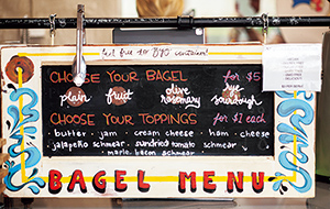 ベーグルは、4種の生地、11のトッピングからセレクト。ビーガン、グルテンフリー、砂糖・牛乳不使用にも対応。
