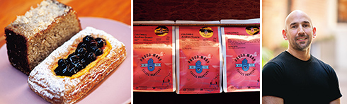 左から:ペストリーはパース西郊ネッドランドのラ・ギャレ・ド・フランスから。/メルボルンのロースターの豆。/オーナーのアーノルドさんは生粋のパースっ子。