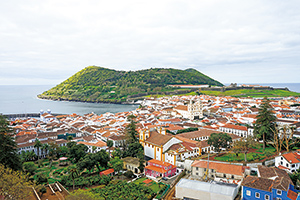 3月、ポルトで小型機に乗り換え、まずは諸島内最大の島、サンミゲル島に向かった。2時間半ほどで機窓からセルリアンブルーの海に浮かぶ緑の島影が見えた。シナモン色の屋根を載せた家々が主要都市ポンタ・デルガダの町並みだ。ポルトガル領アソーレス諸島はリスボンの西約1200㎞の大西洋上にあり、大小9つの火山島から成る。紀元前のカルタゴ人の遺跡も見つかっているが(この発見により、この諸島こそは伝説の大陸アトランティスの残滓ではないかと話題に)、現在の諸島の成り立ちにつながる歴史の起点となると、ポルトガル人のディエゴ・デ・シルベスによって「発見」された1427年ということになる。