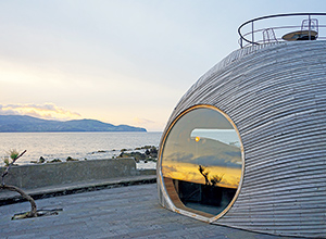 「セラ・バー」の印象的な外観。全容は木製の宇宙船のようだ。
