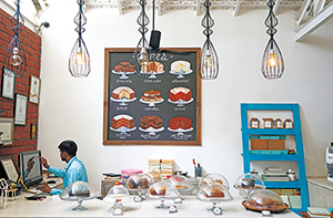 木製の棚には見るからに焼き立てのパリッとしたパンが並び、その上のボードには「正しいパンの保存方法」が箇条書きにされている。この〝正攻法〟が健康意識の高い人々にミートし、店は評判となって店舗を増やし続けた。この店のもう一つの魅力としてチェンナイっ子たちが認めるのが併設されているカフェのコーヒーの美味しさだ。