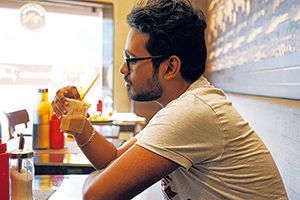 コールドコーヒーを飲みに立ち寄った人。近くの家電関係の会社に勤めているという。
