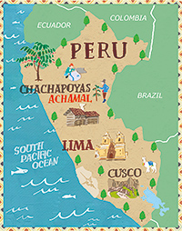 高橋さんの農園は、ペルー北部で、アンデス山脈の東側のアマソナス県ロドリゲス・デ・メンドーサ郡チリモト地区のアチャマル村に位置する。