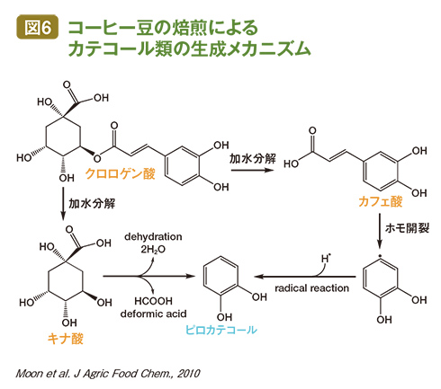 「コーヒーの有効成分としてはクロロゲン酸がよく知られていますが、実は焙煎の過程で壊れていくのです。その代わり熱によって反応が進んで増えるのが『ピロカテコール』という成分です。今回はこのピロカテコールが有効成分だとわかりました」(図6)