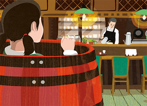 客は途切れることなくやってくるけれど、にぎわうというほどではない。マスターは1人で黙々とコーヒーをいれたり、料理を作ったりしていた。店の隅っこには、コーヒー豆が入っていた大きな樽が置いてある。からだが小さかった彼女は、その樽の中に入ってじっとしたり、本を読んだりするのが好きだった。
