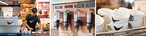 「コーヒーだけでなく、メニューのケーキ類や販売用のオリジナルグッズも小規模生産者が作る品です。またこの店舗の内装のあちこちには再利用の建材を使っています。上質なコーヒーをお出しするだけでなく、フェアトレードやリサイクル、持続可能性といった今後ますます必要とされる文化を、コーヒーを通じて発信していきたいのです」とゴルディージョさん。