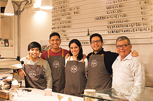 仲の良さが印象的だったスタッフの皆さん。右から二番目がハリー・ネイラさん。右端は、カフェのロジスティックスを担うネイラさんの父親。