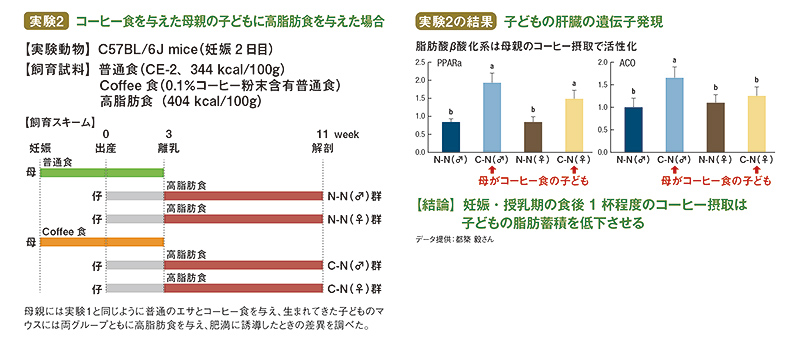 「高脂肪食を与えましたが、結果は実験1と同じで、母親がコーヒー食を食べていた子どもたちの方がそうでない子どもたちよりも内臓脂肪が少ないという結果になりました」