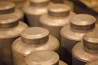 コーヒー豆の保存用に使われた茶筒。こんなところにも台湾の茶文化とコーヒー文化の融合が見られる。