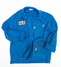 企業理念に賛同して採用が決まった社員にはまず、名前入りのオリジナル作業着を配付する。「ベルヴィル焙煎所の旗印。この旗の下に集って働こうという、チームワーク強化の道具です」
