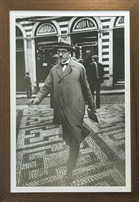 ベルトランド書店の前を颯爽と歩くペソアを捉えた有名な写真。書店は今もガレット通りに健在。
