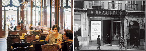 左から:ア・ブラジレイラ。時間帯によってはツーリストでごった返すが、午後遅めならゆったりと過ごせる。/ペソアが通った時代のア・ブラジレイラの様子。
