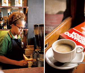 右から:ア・ブレジレイラは「ビカ」という呼び名を生み出した店だが、ミルクコーヒーを注文する客が多い。/ビカはやや苦味が強め。