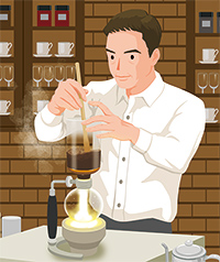 「平日はなかなか時間がとれないので缶コーヒーが多いですが、休日には豆をがりがりと挽いて、コーヒーサイフォンでポコポコと上下している様子を見るのが好きです。アルコールランプだけだと時間がかかるので、ある程度温めた湯を入れてクライマックスにすぐ到達するようにしたりしています」