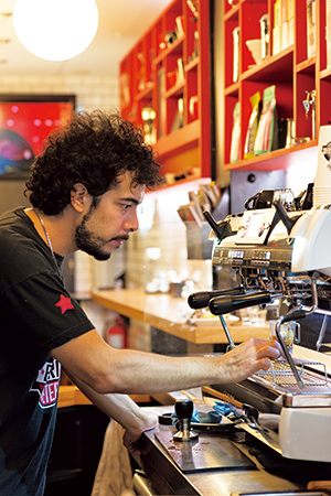 黒地に店名と赤い星を配した看板を掲げた小さなコーヒースタンドで、ロチャスさんは、エスプレッソマシンを注視して丁寧にコーヒーをいれる。彼の真摯な姿に惹かれるのか、