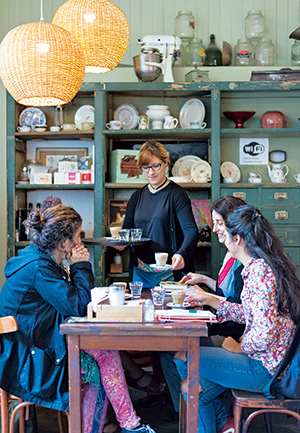 手作りのパンやケーキが人気のマルヴォンでは、今日も女性のおしゃべりに花が咲いていた。おしゃれなアンティーク日用雑貨を装飾に散りばめた店舗インテリアも女性に好まれそうだ。