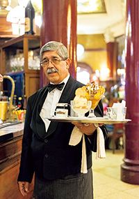 現存するなかで最も古い、創業1858年のカフェ・トルトーニは、重厚感漂うインテリアが魅力で、訪れる観光客が終日絶えない。壁には、かつてここに集った芸術家たちの絵画が掲げられ、店の奥には生前に通った文豪ホルヘ・ルイス・ボルヘスやタンゴ歌手カルロス・ガルデルらの彫刻が飾られている。まるで博物館のようなカフェはこの街の歴史を知る上で必見だ。