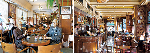 カフェ・トルトーニのほかにも人気のカフェ・ノターブレをもう二つ紹介しよう。高級住宅街レコレータのラ・ビエラは、モータースポーツがブームの最中だった1950年代に店名を今のものに変えた。「ビエラ」とはエンジンパーツの名称で、店内には当時のブームが感じられる白黒写真が展示されている。おすすめは屋外の路面席。天に向けて枝を伸ばした樹齢200年以上のゴムの木の木漏れ日の下でコーヒーが楽しめる。南米の雄大な自然を背景にした街のあり方と歴史が感じられるカフェだ。