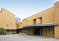 大使館は槇文彦氏の設計。サロンの色彩は乳白色を、フォルムは円形と四角形を基調としている。