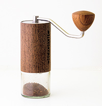 「挽きが精緻で、オブジェとしても美しい」と愛用するドイツ製コーヒーミル。ミル部分がかなり頑丈で、一生ものの耐久性がある。下のドリップセットと共に、産地巡りに欠かせない道具だ。