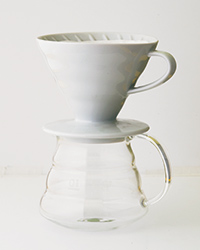 国外出張には、ペーパードリップセットを持参。日本製のカップがお気に入りで、ここ数年ドリップはこれのみ。「これとミルと豆があれば、世界中どこでも美味しいコーヒーが飲めます」