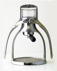 愛車に搭載し、国内ではどこへでも持ち運ぶ手動のエスプレッソマシン。簡素な作りながら、プレス前の「蒸らし」もしてくれる。「細かくて綺麗なクレマができる、素晴らしいマシンです」