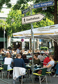 フランクフルトはゲーテが生まれ、16歳までと20代の半分ほどを過ごした街である。初恋をしたのも、汎神論と出会ったのも、『ウェルテル』を発表したのも、最初の婚約(後に解消)をしたのもフランクフルトでのこと。コーヒーの魅力に目覚めたのもこの街でのことだったに違いない。