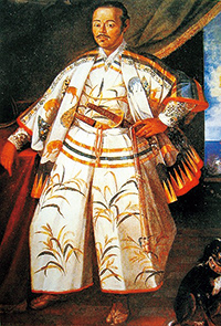 ローマで描かれた支倉常長の肖像画。この艶やかな陣羽織姿で国王にもローマ法王にも会っている。