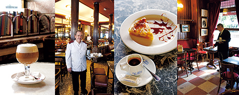 左から:カフェ・コメルシアルの人気メニュー、アイリッシュ・コーヒー。/同店は去年一旦閉店となったが、新たな買い手が名乗り出て、今年末に再開店する運びとなった。/マドリードで2番目に古いグラン・カフェ・デ・ヒホンは1888年創業。/勤続38年のカマレロ(ウェイター)、マリアーノ・ブランコさん。