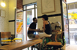 ラ・プラナ通りのトマ・カフェ。支倉一行とは無縁に見えるが、こんなモダンな店のコーヒーも「最初の一杯」につながっているのだ。