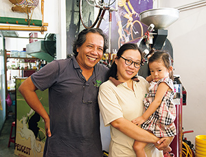 ティグンさんと妻のサンドラさん。そして娘のサヴィーナちゃん。背後にはロースターとティグンさんの愛車が。
