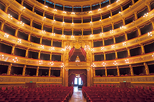 マッシモ劇場をステージ側から見る。中央2階のテラス席にゴッドファーザーのファミリーが陣取った。
