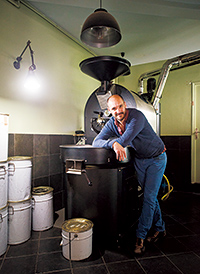 1975年パリ生まれ。歴史研究者、食・ワインのライターを経て、コーヒー焙煎士へ転身。毎日焙煎を行う、Probatの最新型(12kg)とともに。