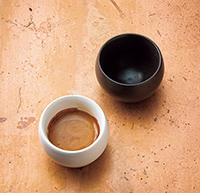 愛するのは、エスプレッソの香りの豊かさとクレマ。その賞味にふさわしいカップを開発し、昨年商品化した。試作は400回に及び、型の採用前には内部構造をレントゲンで調べたことも。